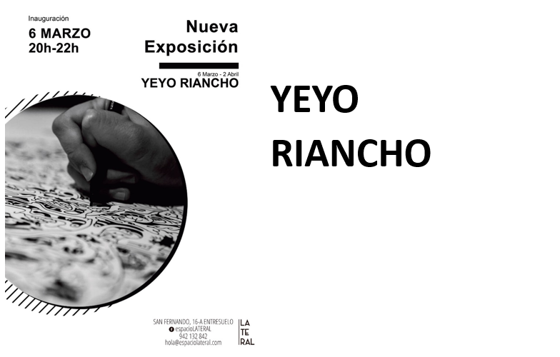 Desde el 6 de marzo hasta el 2 de abril, Yeyo Riancho expone en la sala LATERAL, en la calle San Fernando, 16-A Entresuelo de Santander en horario de 20,00 h a 22,00 h.