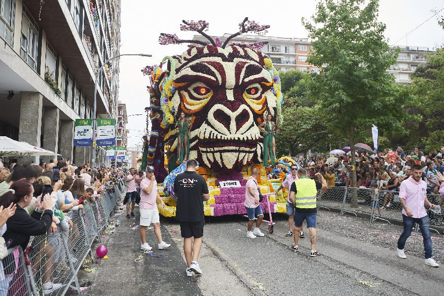 Las carrozas `Stone`, de la agrupación Mi vida loca, `Cerbero` de los carrocistas Come golayu que lo ha hechu güela, y `Tirya`, del Grupo Pejino han sido las galardonadas en la categoría A de la 112 edición de la Batalla de Flores de Laredo.