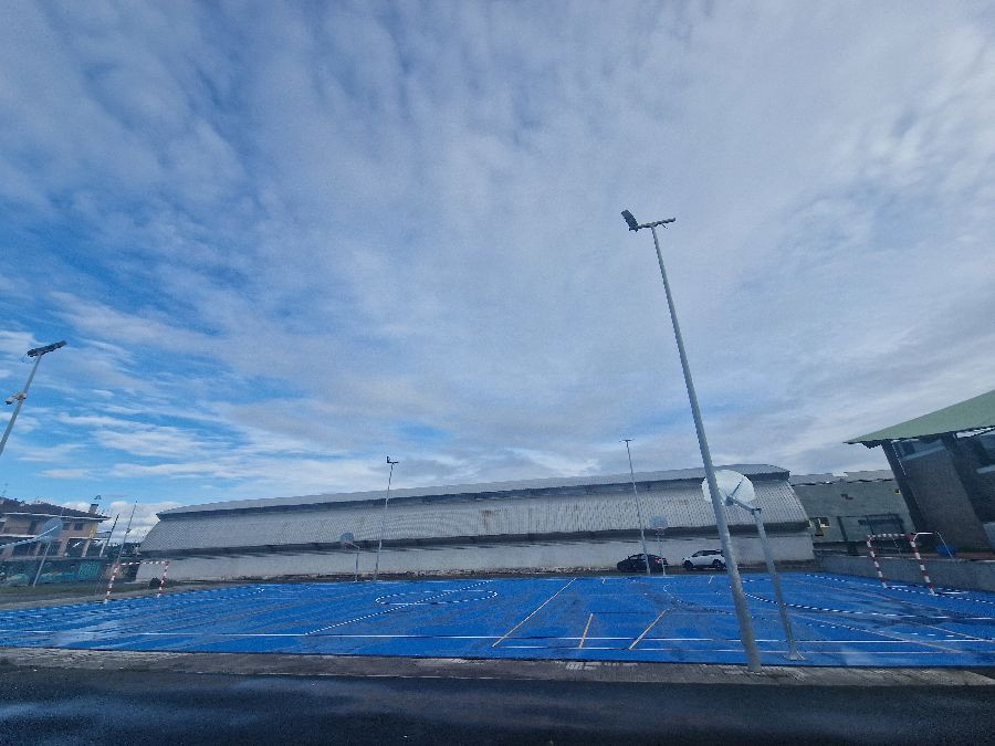 Las marcas de la pintura estaban también "muy desgastadas", y carecía de canastas y porterías. Además, tampoco funcionaba la recogida de aguas pluviales, que estaba colapsada.