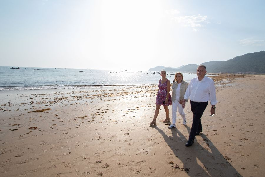 Los tres han visitado esta mañana las playas de Noja para comprobar los trabajos de retirada de alga llevados a cabo durante la noche -se han recogido mil toneladas, que al igual que las anteriores se depositan hasta que se secan para llevarlas después a una empresa especializada en tratarlas-.