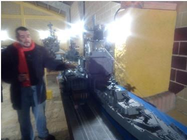 Su propietario, Jose Luis, ha construido personalmente y sin ayuda de nadie, todas las maquetas con una realidad asombrosa durante estos últimos 4 años. Nos comentaba que tiene una sala de diseño con ordenadores para preparar a escala cada maqueta y para ello utiliza los planos del barco, mediante el programa autocad crea cada pieza a la escala que necesita y las hace una a una, para luego trasladarlas a la maqueta definitiva con una fidelidad y exactitud impresionantes.