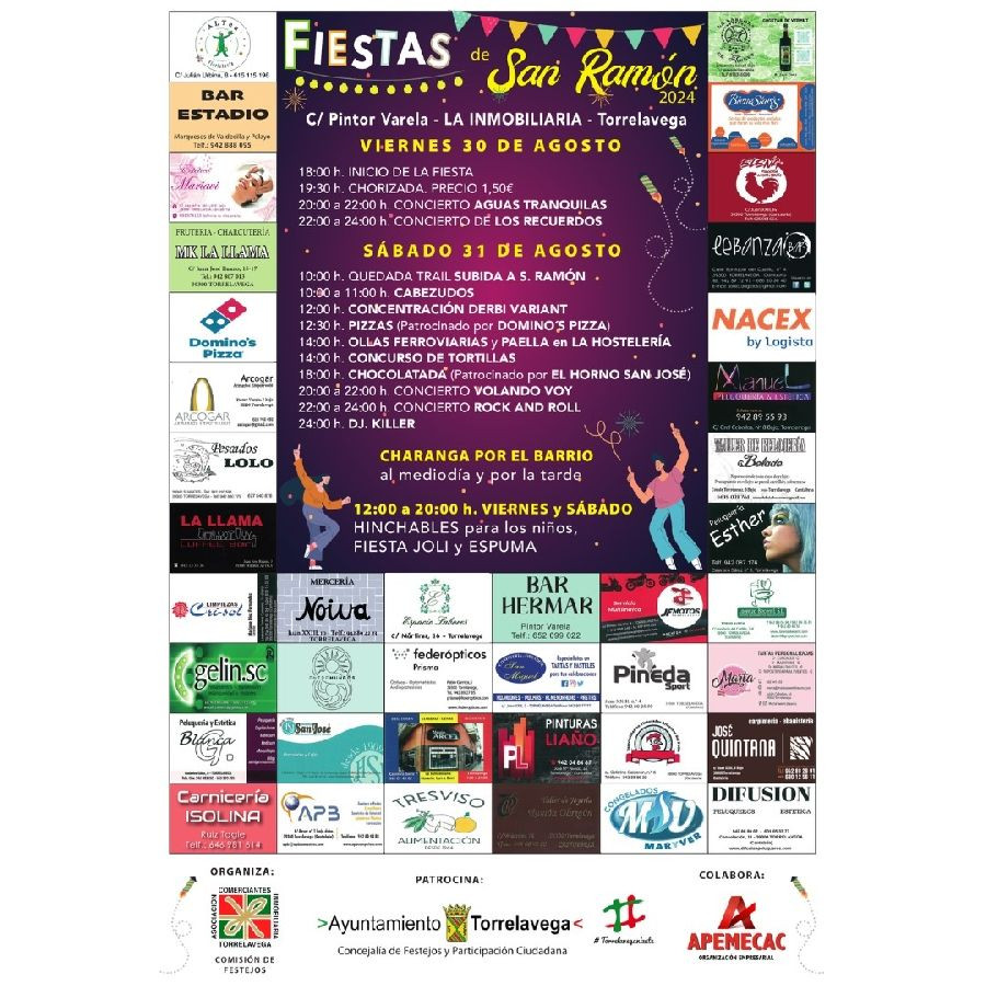 El barrio de La Inmobiliaria, en Torrelavega, celebra este fin de semana sus fiestas de San Ramón con "un programa variado y con muchas propuestas". Las actividades se desarrollarán el viernes 30, desde las 18.00 horas, y el sábado 31, en la calle Pintor Varela.