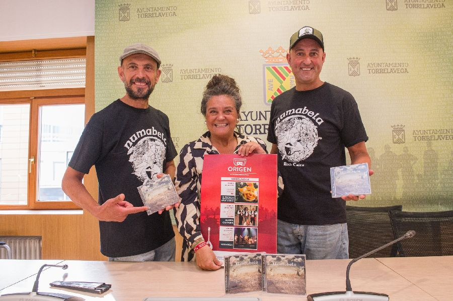 La concejala de Cultura, Esther Vélez, acompañada por Roberto González y Chema Vázquez, miembros de Numabela, han presentado este jueves en rueda de prensa el concierto, que se enmarca en el Ciclo Origen, el programa de la Consejería de Cultura del Gobierno regional que lleva diferentes actuaciones por los municipios de Cantabria.