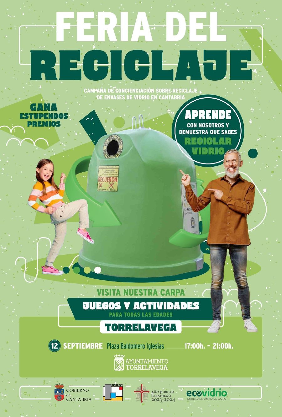 La plaza Baldomero Iglesias de Torrelavega acogerá este jueves, 12 de septiembre, la Feria ECOVIDRIO del Reciclaje que se desarrollará de 17.00 a 21.00 horas con actividades dirigidas a todo tipo de público.