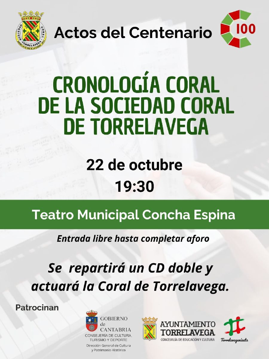 La Sociedad Coral de Torrelavega presentará los discos del Centenario el miércoles, 22 de octubre, en un acto en el Teatro Municipal Concha Espina (TMCE), en el que serán repartidos de forma gratuita entre los asistentes.
