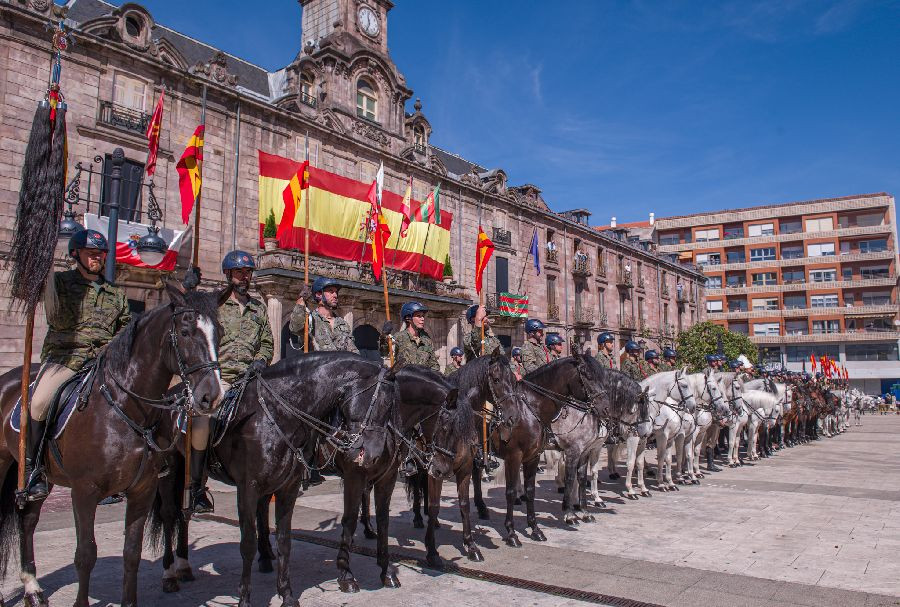 La Guardia Real ha desfilado este viernes desde el Mercado Nacional de Ganados por la Avenida del Cantábrico, Teodoro Calderón, rotonda de Galicia, Cuatro Caminos, José María Pereda y Bulevar Demetrio Herrero, donde ha tenido lugar el acto oficial. Después han continuado por Julián Ceballos, Avenida Fernando Arce y concluido de nuevo en el Mercado de Ganados.