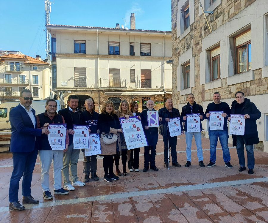 Los concejales de Movilidad y Comercio, Jesús Sánchez y Cristina García Viñas, respectivamente; el presidente de Acción Visión España, EsRetina y Retina Iberoamérica, Andrés Mayor; el delegado de Esretina en Cantabria, Jesús Delgado; el socio de honor y colaborador de EsRetina Pedro Sobrado y representantes de las asociaciones de comerciantes del municipio han presentado este lunes en rueda de prensa esta nueva acción.