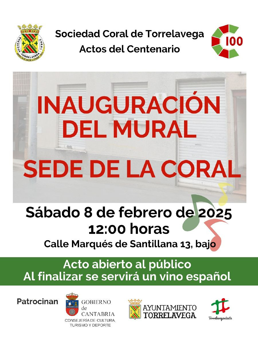 El mural se inaugurará este sábado día 8, a las 12.00 horas, dentro de las actividades programadas por la comisión organizadora de los actos de celebración del centenario de la Coral.