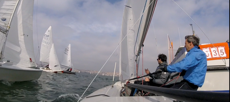 La marea entrante ayudaba a mantenerse sobre la línea, siendo la salída valida a la primera. Inmediatamente de la arriada de la bandera, varias tripulaciones viraron a babor para navegar con memos corriente, mientras que otras alargaron el bordo de estribor en busca de la rolada al Norte; que cuando les entraba, les colocaba por delante; en el final de tramo el viento se decantó por rolar a la derecha, con lo que viraron primero se colocaron en cabeza, con ventaja,.